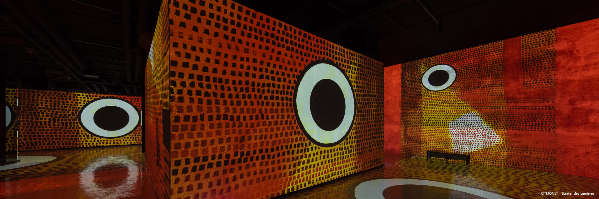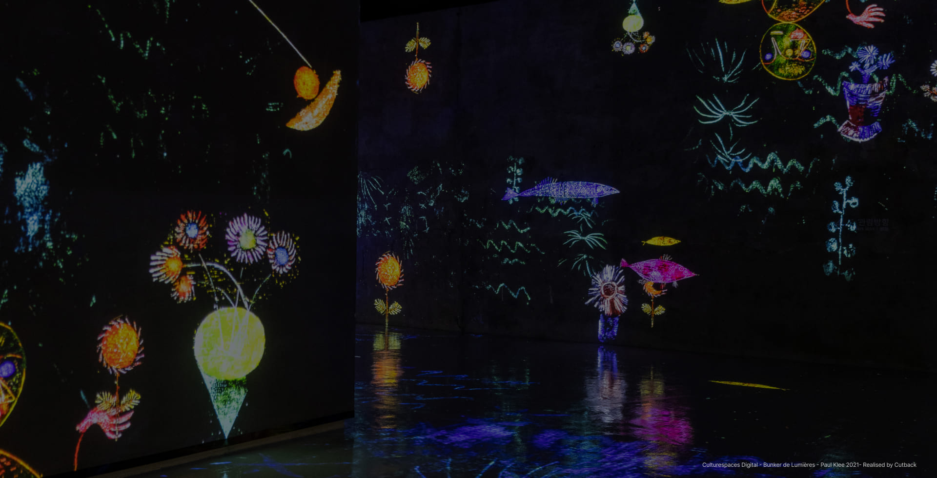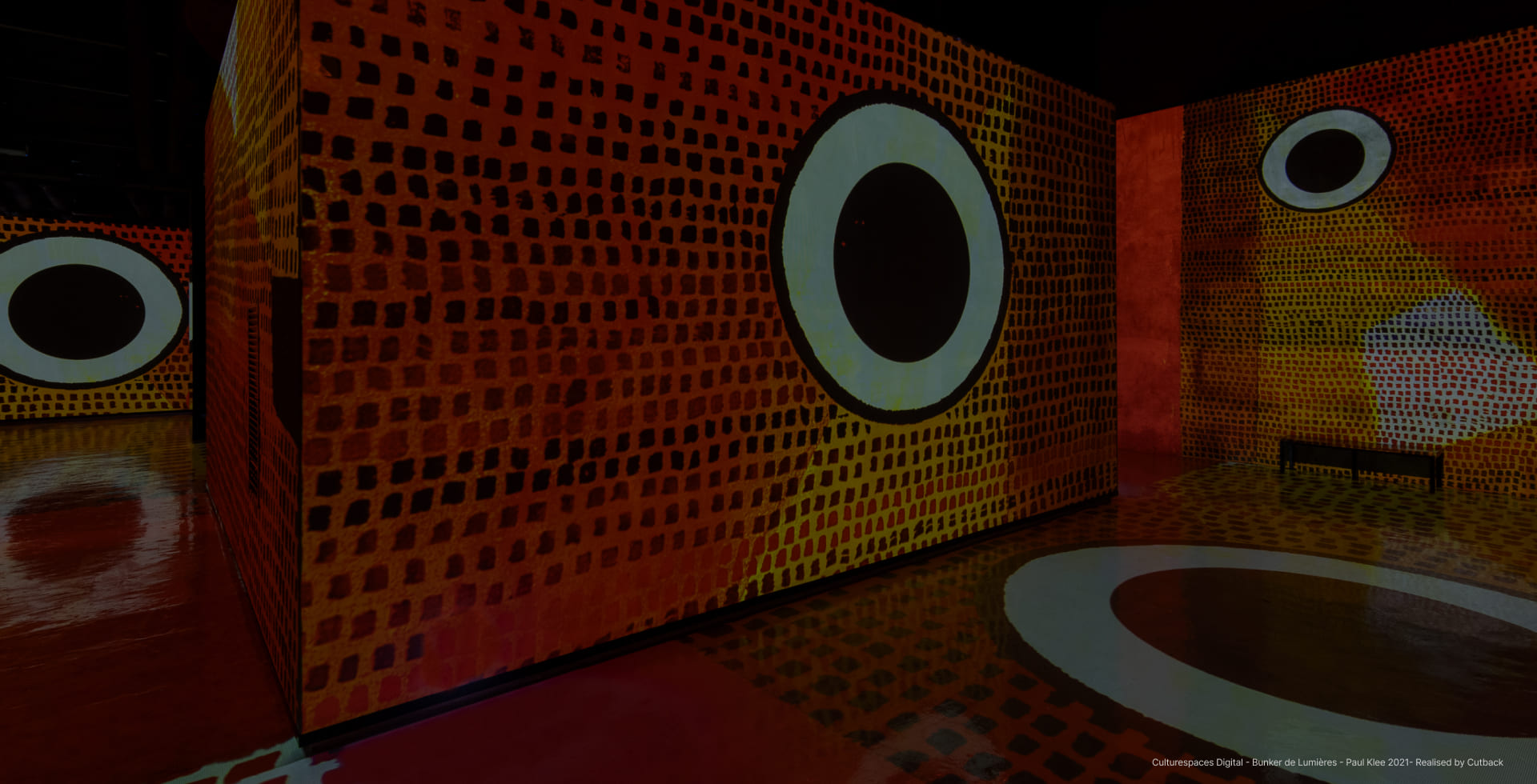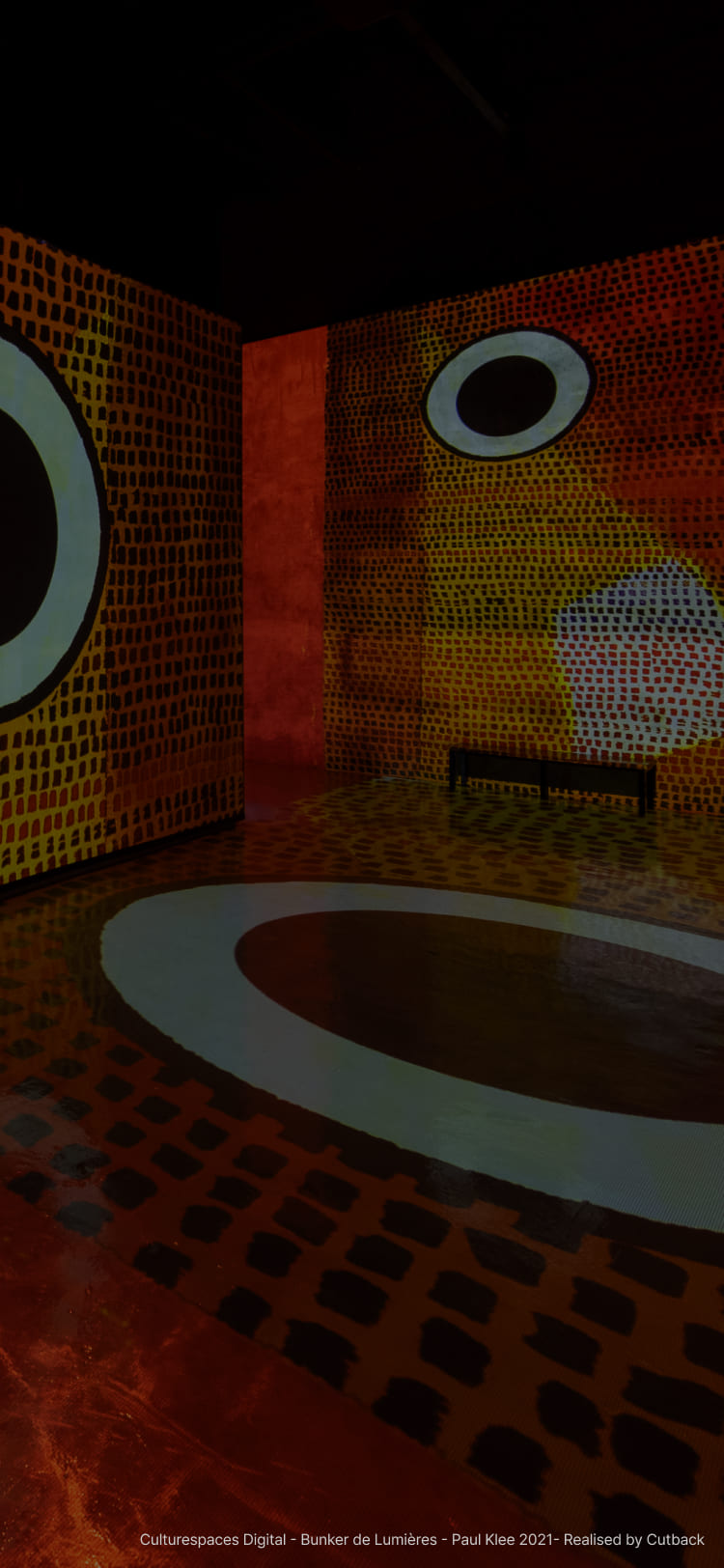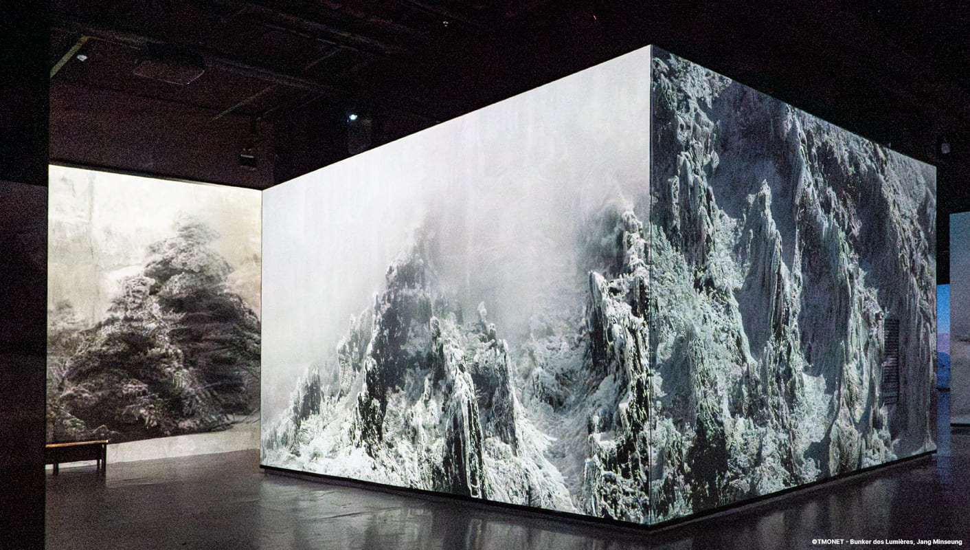 900평 비밀 벙커 벽과 바닥 전체에 빛으로 쏟아지는 두 편의 전시 음악과 함께 작품과 하나 되는 황홀경을 경험할 시간