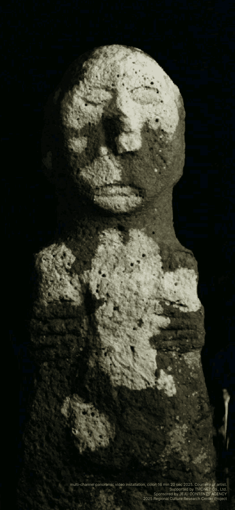 작가는 제주 서귀포의 지형을 답사하며, 그 지역의 풍경과 제의적 상징을 시적인 구성으로 영상 속에 담아내었다.