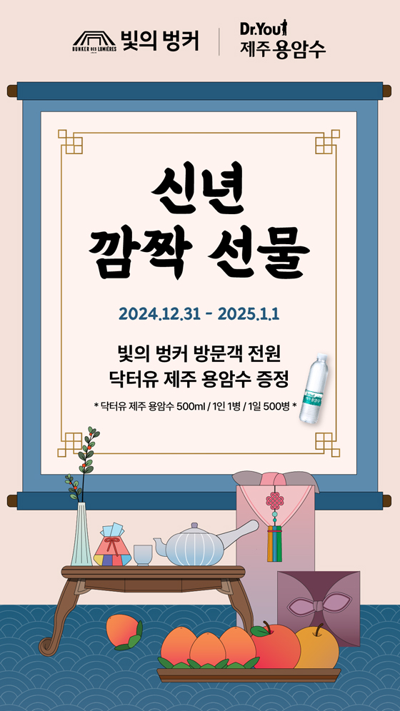 빛의 벙커 X 닥터유 제주 용암수 신년 깜짝 선물 이벤트 이벤트 상세 정보 기간 2024.12.31 ~ 2025.01.01 경품 닥터유 제주 용암수 당첨자 발표 이벤트 안내 빛의 벙커 X 닥터유 제주 용암수 신년 깜짝 선물! 🎁🎉 이벤트 기간 : 2024.12.31(화) - 2025.01.01(수) 목록