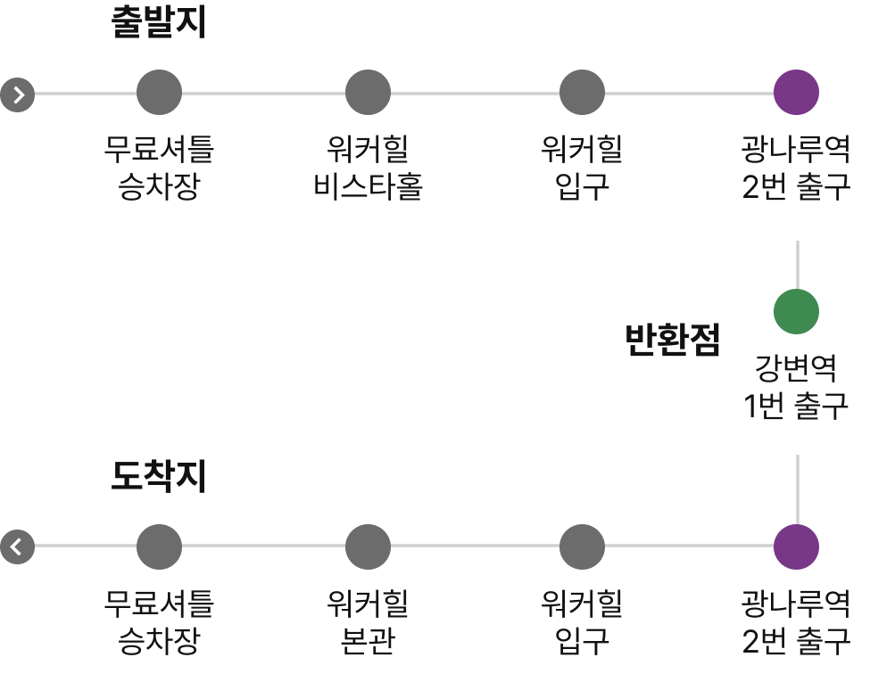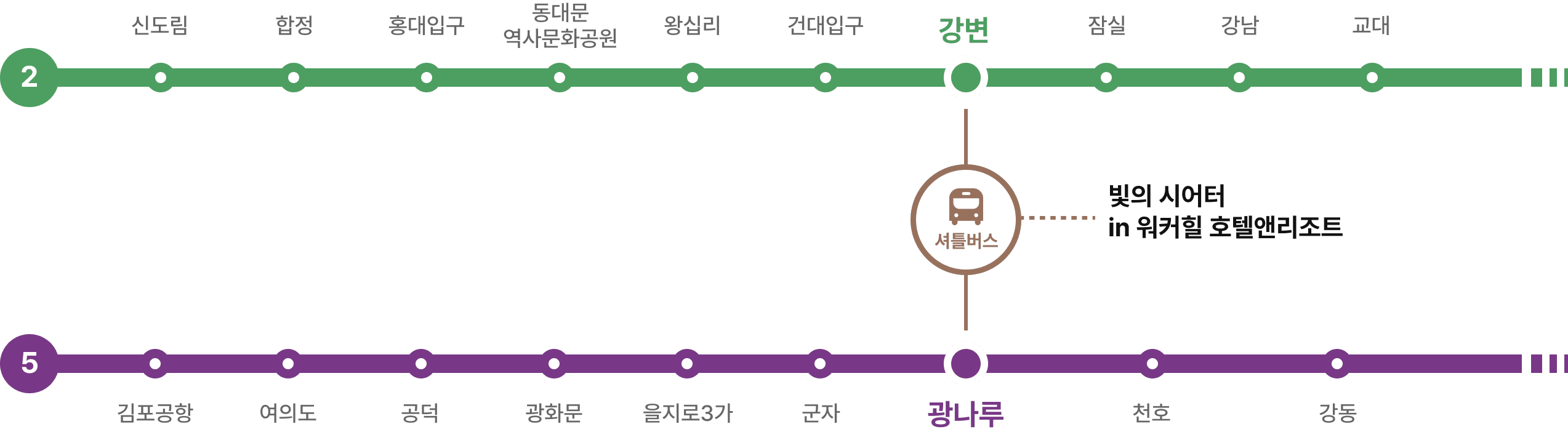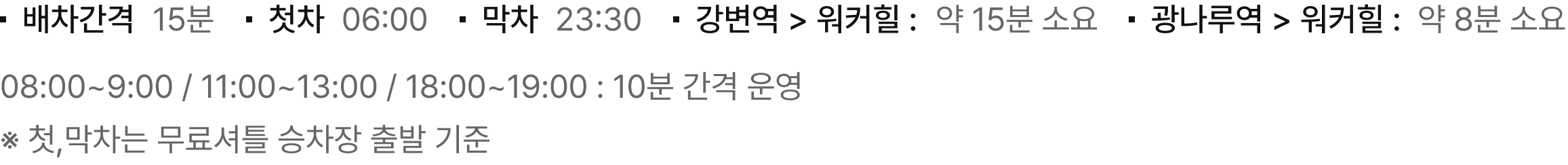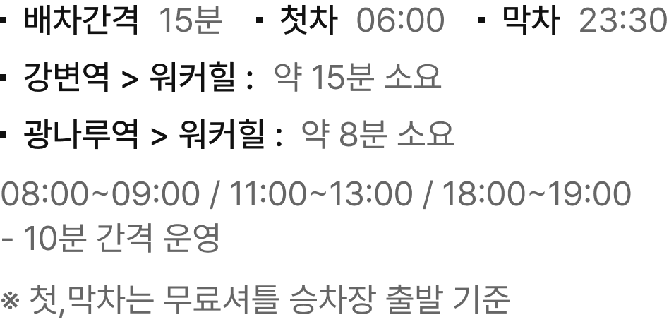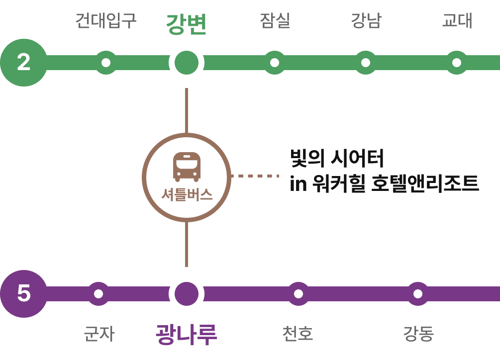 무료 셔틀버스 안내  (5호선 광나루, 2번 출구 / 2호선 강변, 1번 출구)