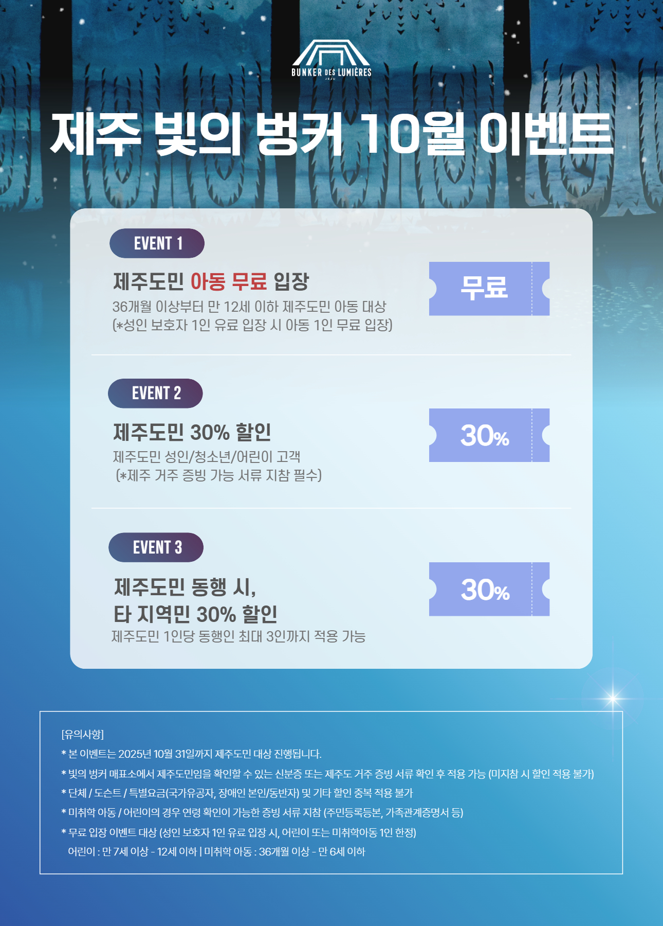 제주 빛의 벙커 10월 무료 입장 이벤트! 📌이벤트 ① 제주도민 아동 무료 입장